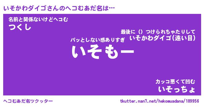 | 意味不明あだ名 | 『ペロリンいそかわダイゴ』 |