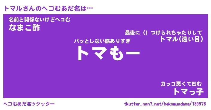 | ヒーロー風カッコイイあだ名 | 『スーパートマル』『ウルトラトマルマン』 |