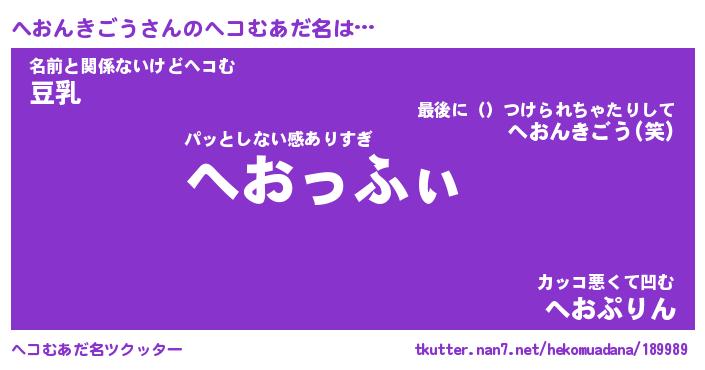 | ヒーロー風カッコイイあだ名 | 『スーパーヘオンキゴウ』『魔戒騎士ヘオ』 |