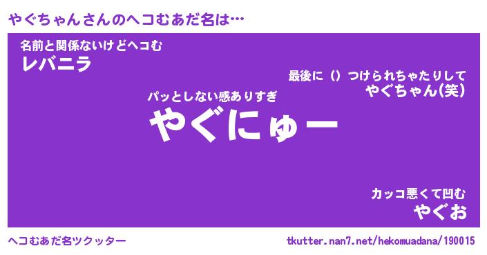 | 2回繰り返すあだ名 | 『やぐやぐ』『ややぐぐ』『ぬらぬら』 |