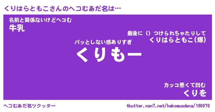 | 伝説のあだ名 | 『伝説のスナイパーくりはらともこ』 |