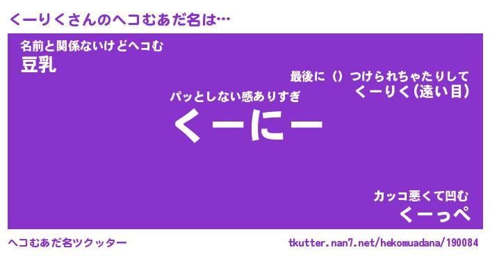 | 意味不明あだ名 | 『ペロリンくーりく』『永久保存くーりく』 |