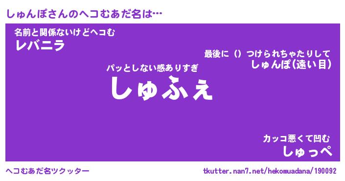 | 意味不明あだ名 | 『ペロリンしゅんぽ』『永久保存しゅんぽ』 |