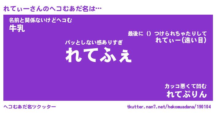 | 意味不明あだ名 | 『ペロリンれてぃー』『永久保存れてぃー』 |