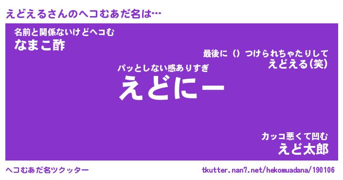 | 2回繰り返すあだ名 | 『えどえど』『ええどど』『なあなあ』 |