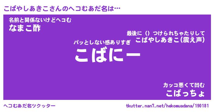 | ポケモン風あだ名 | 『コバチュウ』『コバヤダネ』 |