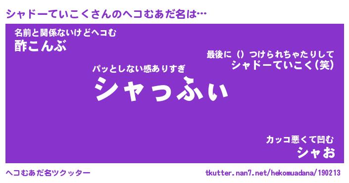 | ポケモン風あだ名 | 『シャチュウ』『シャドダネ』 |