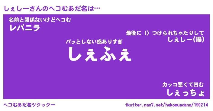 | 2回繰り返すあだ名 | 『しぇしぇ』『ししぇぇ』『ぬめぬめ』 |