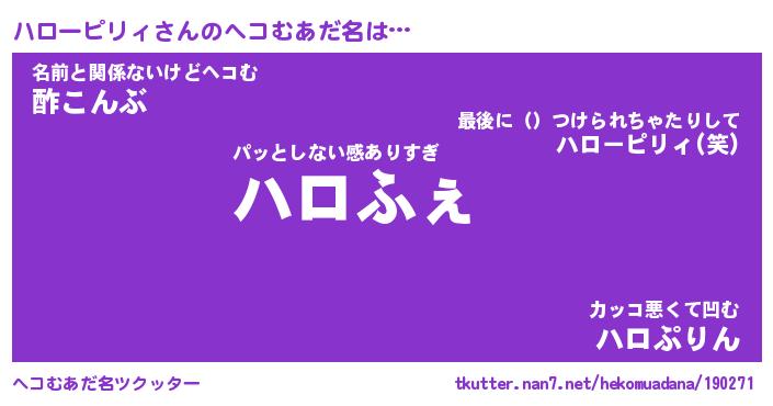 | ポケモン風あだ名 | 『ハロチュウ』『ハローダネ』 |
