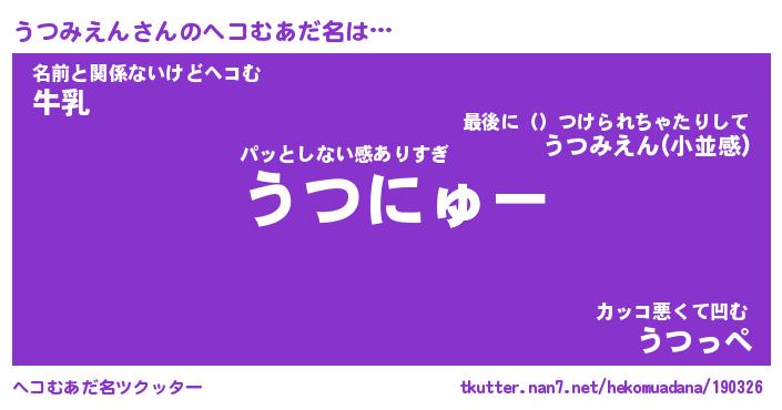 | 意味不明あだ名 | 『ペロリンうつみえん』 |