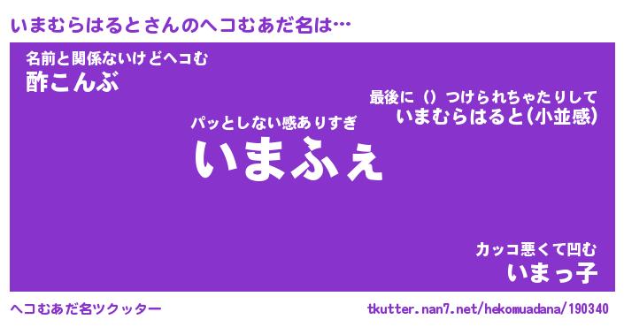 | ポケモン風あだ名 | 『イマチュウ』『イマムダネ』 |