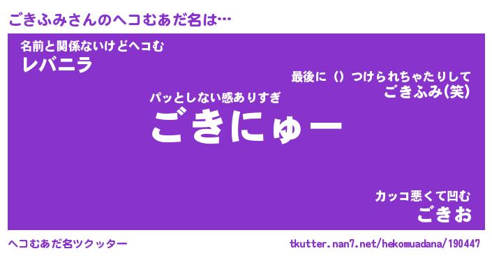 | 意味不明あだ名 | 『ペロリンごきふみ』『永久保存ごきふみ』 |