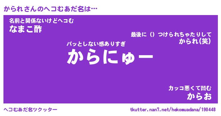 | 胡散臭い通販商品みたいなあだ名 | 『億万長者になれる水晶球…その名も「かられ」』 |