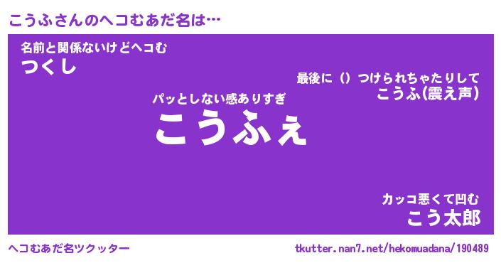 | ファンタジー風あだ名 | 『コウフェル』『エターナルコウフー』 |