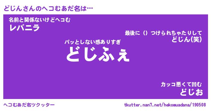 | 意味不明あだ名 | 『ペロリンどじん』『どじんフォーエバー』 |