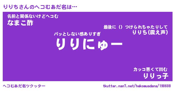| 意味不明あだ名 | 『ペロリンりりち』『りりちフォーエバー』 |