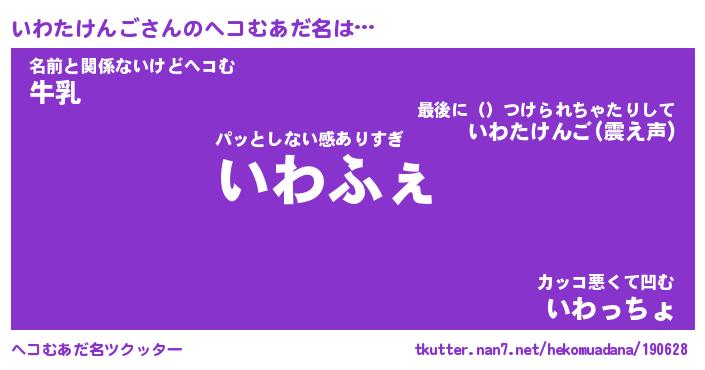 | ヒーロー風カッコイイあだ名 | 『スーパーイワタケンゴ』『暗黒騎士イワ』 |