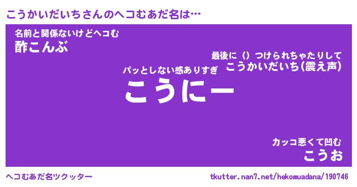 | 恥ずかしいあだ名 | 『プリティーこうかいだいち』『こうちん』 |