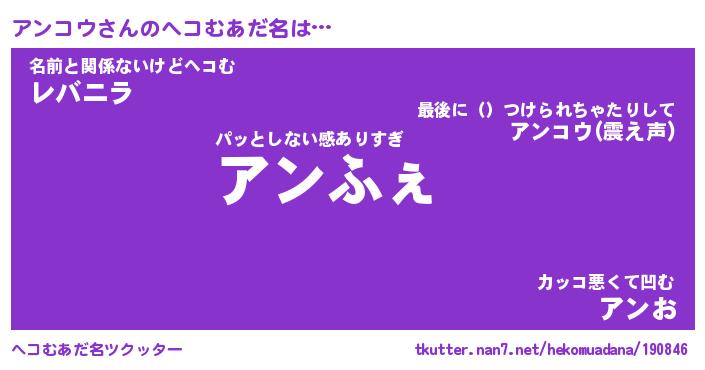 | ファンタジー風あだ名 | 『アンフェル』『エターナルアンコウー』 |