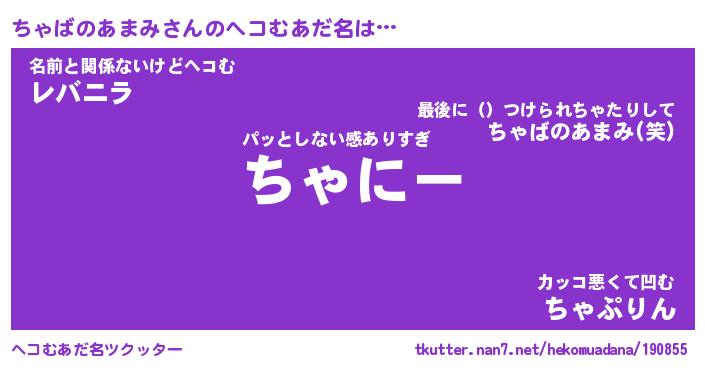 | 意味不明あだ名 | 『ペロリンちゃばのあまみ』 |