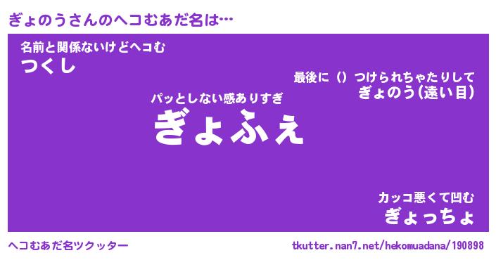 意味不明あだ名 | 『ペロリンぎょのう』『永久保存ぎょのう』 |