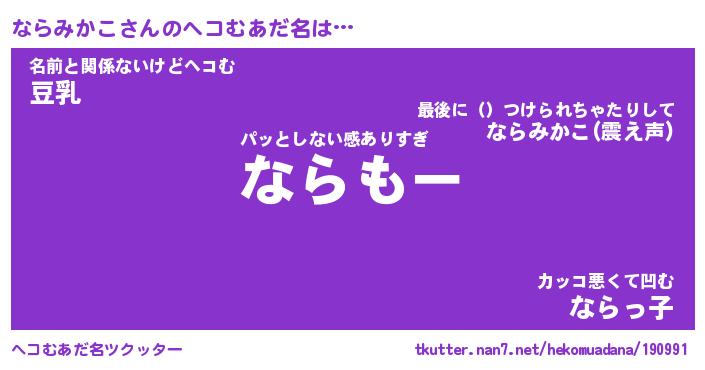 | ヒーロー風カッコイイあだ名 | 『スーパーナラミカコ』『黄金騎士ナラ』 |