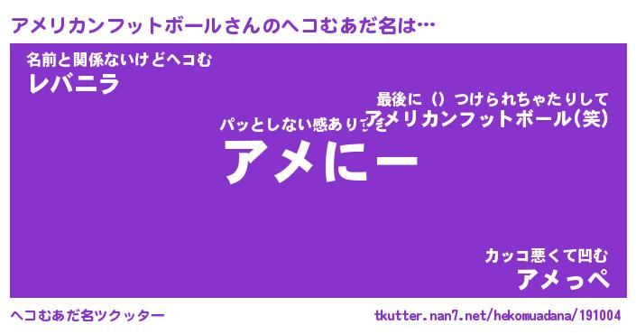 | 男性向けラノベタイトル風あだ名 | 『アメリカンフットボールの憂鬱』 |