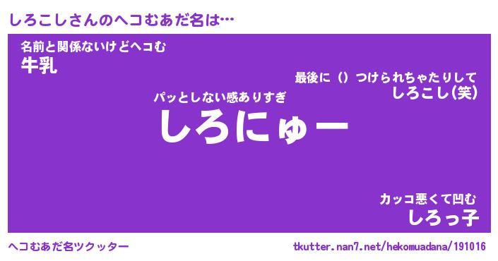 | 意味不明あだ名 | 『ペロリンしろこし』『永久保存しろこし』 |