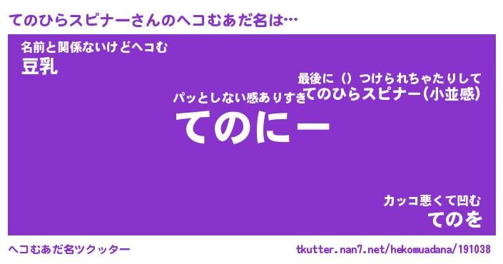 | ヒーロー風カッコイイあだ名 | 『スーパーテノヒラスピナー』 |