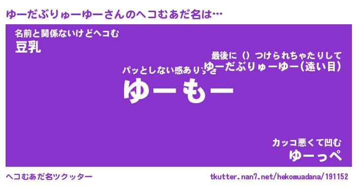 | 2回繰り返すあだ名 | 『ゆーゆー』『ゆゆーー』『うねうね』 |