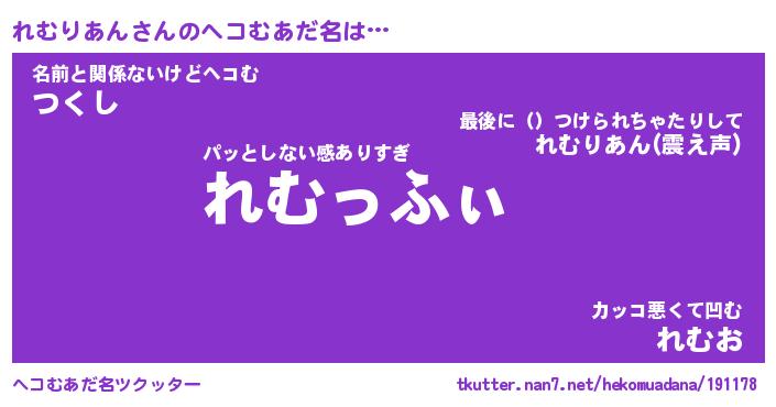 | 2回繰り返すあだ名 | 『れむれむ』『れれむむ』『いらいら』 |