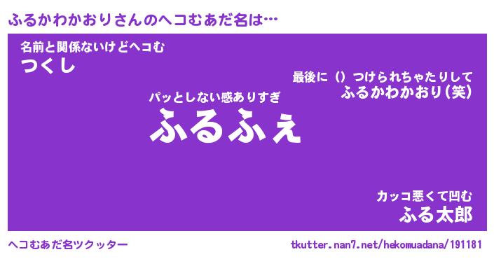 | 意味不明あだ名 | 『ペロリンふるかわかおり』 |