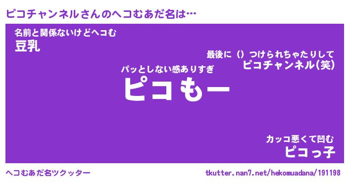 | ポケモン風あだ名 | 『ピコチュウ』『ピコチダネ』 |