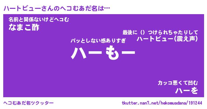 | ポケモン風あだ名 | 『ハーチュウ』『ハートダネ』 |