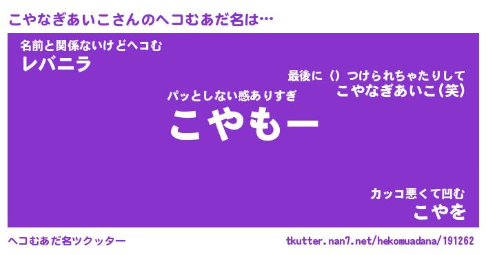 | ポケモン風あだ名 | 『コヤチュウ』『コヤナダネ』 |