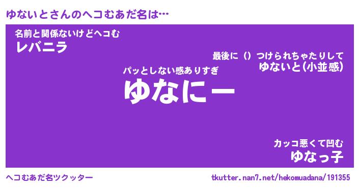 | 2回繰り返すあだ名 | 『ゆなゆな』『ゆゆなな』『へらへら』 |