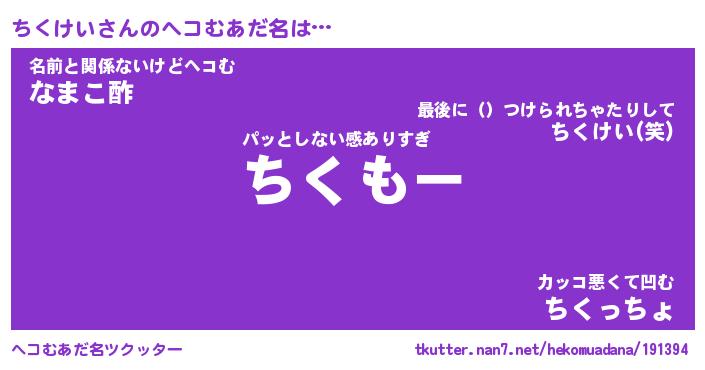 | 意味不明あだ名 | 『ペロリンちくけい』『永久保存ちくけい』 |