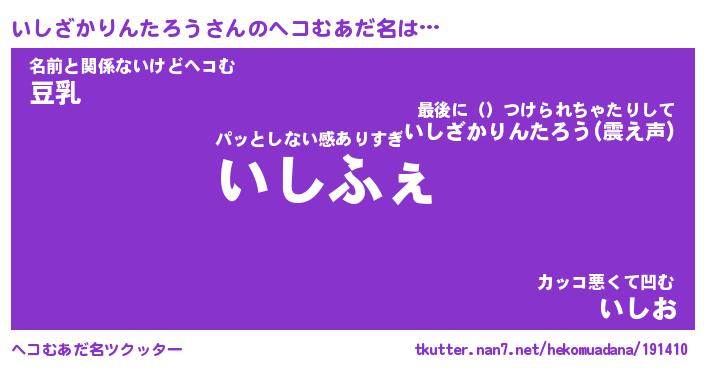 | 意味不明あだ名 | 『ペロリンいしざかりんたろう』 |
