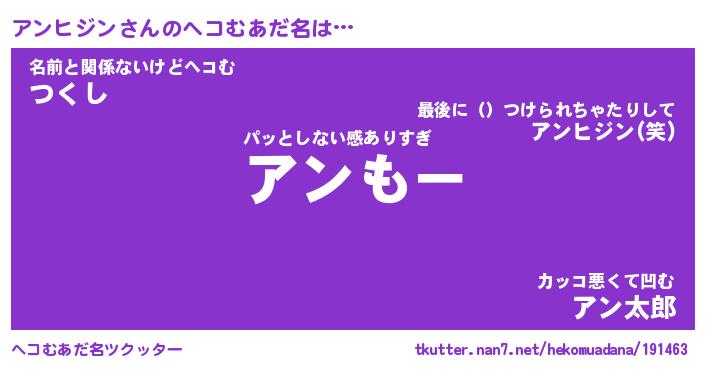 | ポケモン風あだ名 | 『アンチュウ』『アンヒダネ』 |