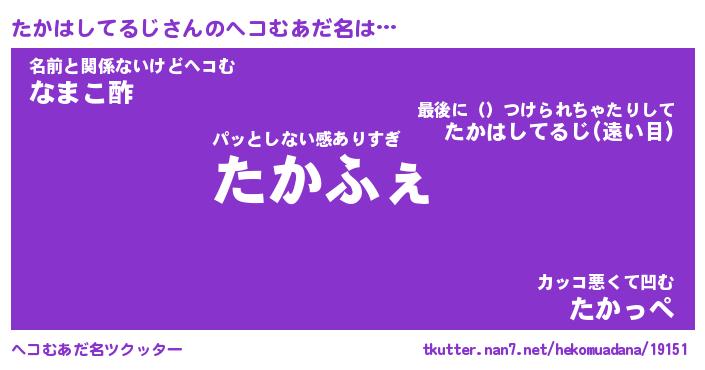 | ポケモン風あだ名 | 『タカチュウ』『タカハダネ』 |