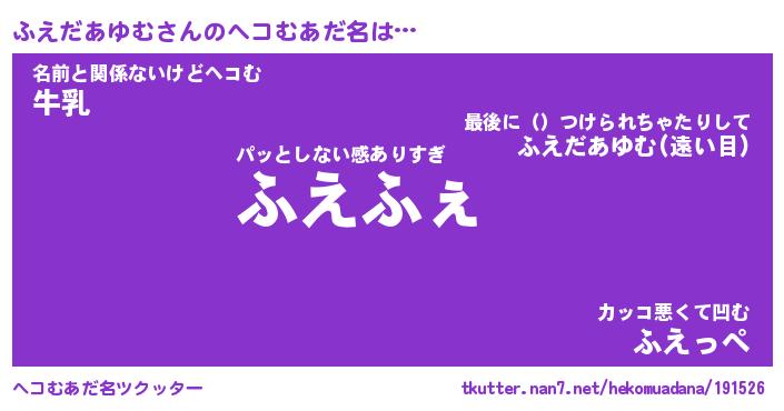 | ポケモン風あだ名 | 『フエチュウ』『フエダダネ』 |