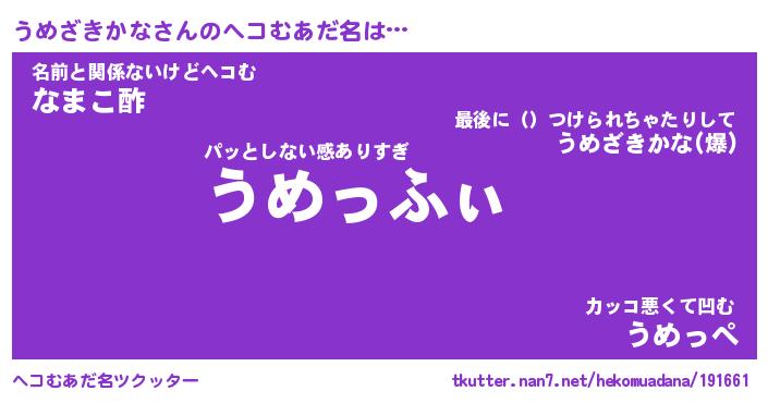 | ポケモン風あだ名 | 『ウメチュウ』『ウメザダネ』 |