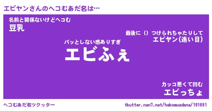 | ファンタジー風あだ名 | 『エビフェル』『エターナルエビヤンー』 |