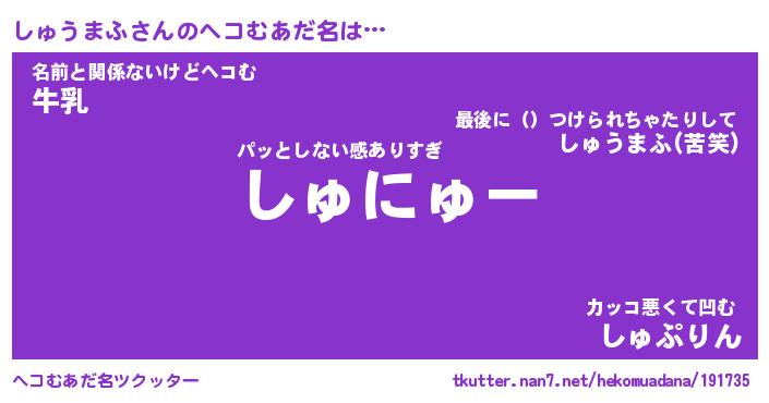 | 男性向けラノベタイトル風あだ名 | 『しゅうまふの憂鬱』 |