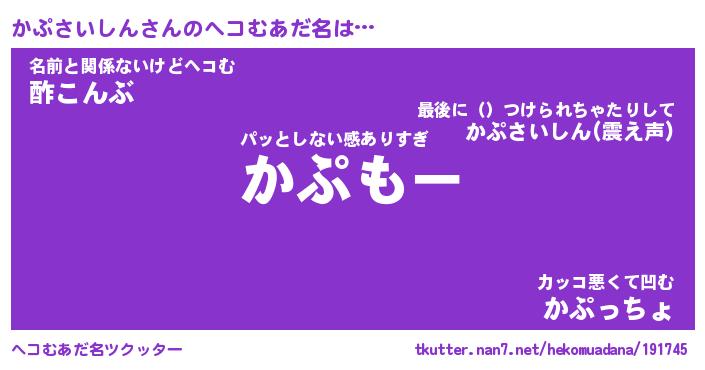| 恥ずかしいあだ名 | 『プリティーかぷさいしん』『かぷっちょ』 |