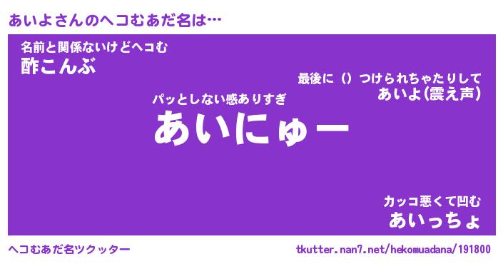 | ポケモン風あだ名 | 『アイチュウ』『アイヨダネ』 |