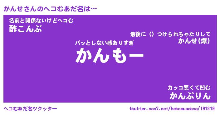 | 意味不明あだ名 | 『ペロリンかんせ』『かんせフォーエバー』 |