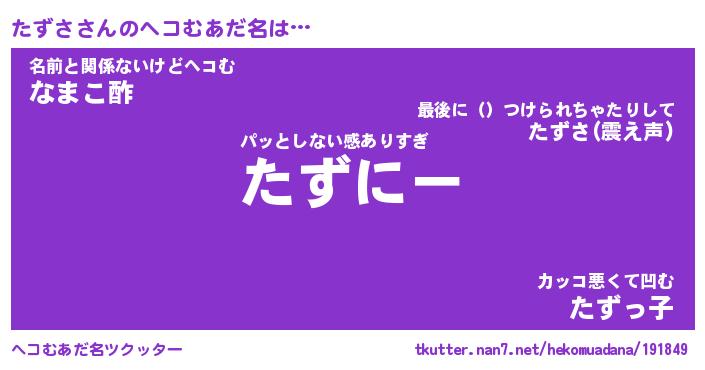 | ポケモン風あだ名 | 『タズチュウ』『タズサダネ』 |