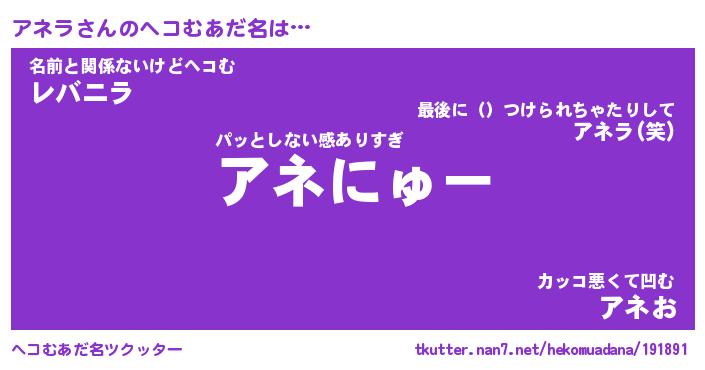 | 意味不明あだ名 | 『ペロリンアネラ』『アネラフォーエバー』 |