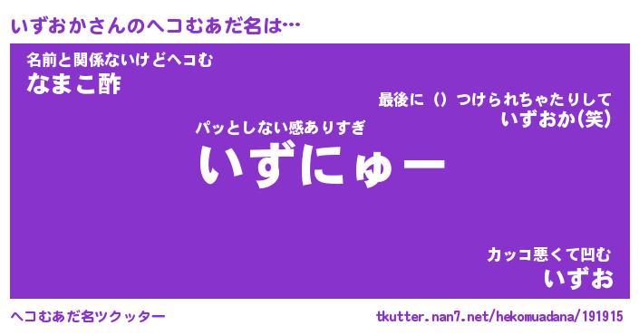| 意味不明あだ名 | 『ペロリンいずおか』『永久保存いずおか』 |